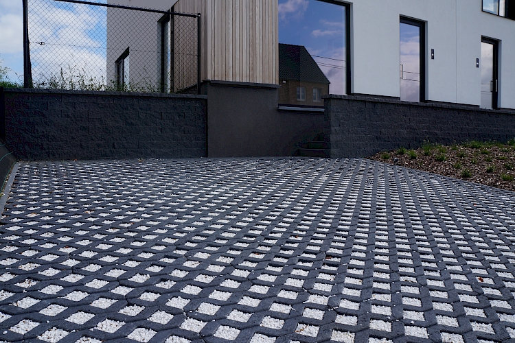 Les dalles de gazon offrent une solution verte et écologique lorsque vous souhaitez poser un pavage. Elles s'intègrent dans un environnement vert tout en apportant une jolie touche. Une solution alternative durable pour le pavage des allées et les parkings. Afin d'allier esthétique et fonctionnalité, les dalles de gazon sont disponibles aussi bien en gris qu'en noir. Cela permet de délimiter des places de stationnement, par exemple. Scheys Beton a sélectionné pour vous deux couleurs de pierre concassée qui correspondent parfaitement à notre Eco Pas, tant en termes de taille que de couleur. Ils peuvent être livrés en même temps que les pavés.